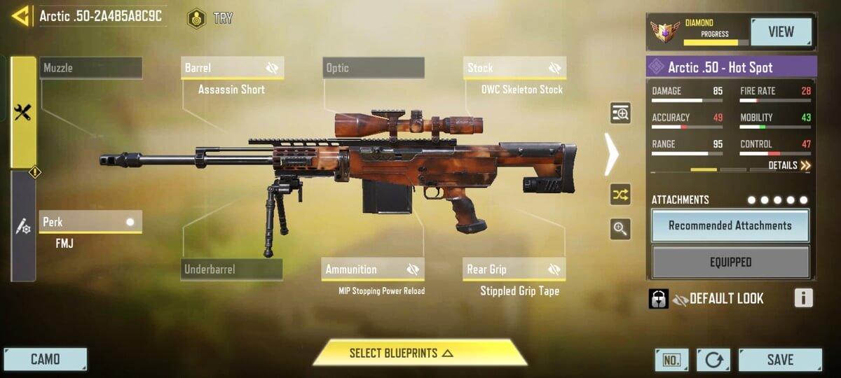 I tested the below Gunsmith for Arctic .50 in COD Mobile, and found that these are working great: